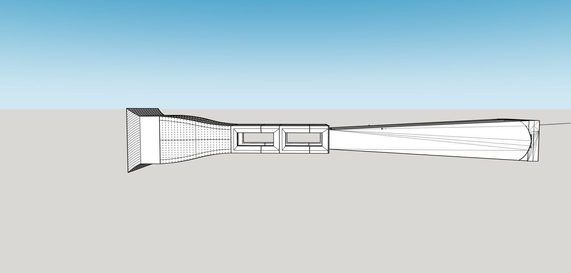 The design consists of an open-return wind tunnel featuring a honeycomb structure at the intake to promote laminar flow. It also includes a test section equipped with passthrough holes for modifying specimen orientation or routing sensor cables. On the exhaust side, two 12 V DC motors handle airflow. I originally intended for the entire structure to be 3D-printed; however, due to the required dimensions, it was not feasible to print the expansion cone, as it must be very long to maintain boundary layer adhesion. Therefore, only critical geometries were printed, such as the intake, honeycomb, test section, and fan shrouds and mounts.
